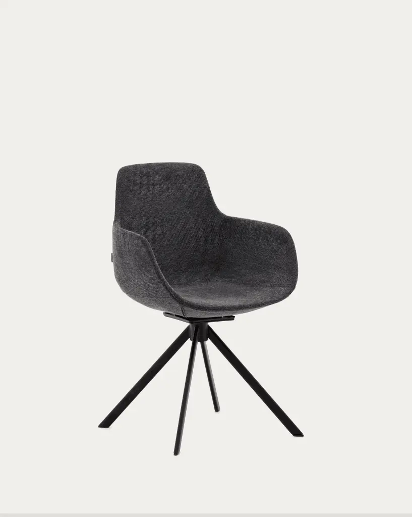 Chaise giratoire auto-retour Tissiana en chenille gris foncé et aluminium noir mat