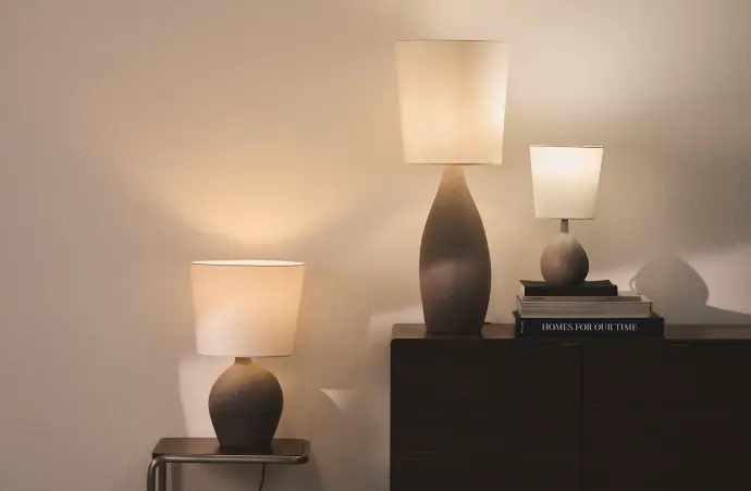 Viona, l’éclat discret d’un instant paisible. La base avec effet pierre transmet une sensation de solidité, tandis que l’abat-jour en coton ivoire diffuse une lumière douce et enveloppante. Des pièces pensées pour apporter une touche de sérénité et d’harmonie à votre intérieur tout en accompagnant chaque moment de leur présence discrète et intemporelle.