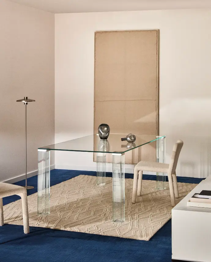 Adularia présente un design minimaliste en verre trempé qui se caractérise par ses lignes épurées et ses angles droits qui combinent simplicité et sophistication. Idéale pour les petits espaces, sa structure transparente laisse passer la lumière, créant une sensation d’amplitude et de légèreté. L’élégance de ses formes géométriques ajoute une touche contemporaine et avant-gardiste, ce qui en fait une option polyvalente et stylisée pouvant s’adapter à n’importe quel intérieur.
